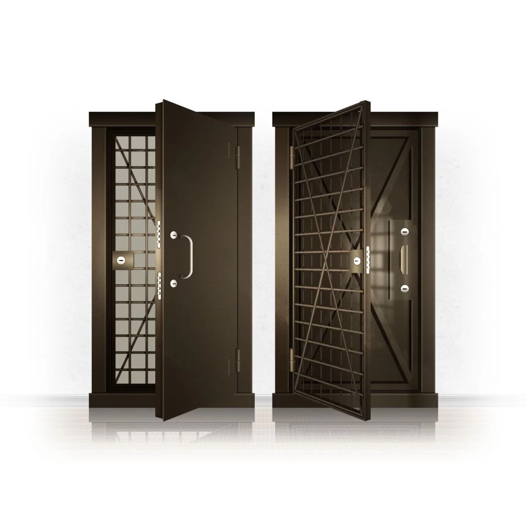 Металлические двери КХО и КХН представляют собой входные блоки, обладающие высоким уровнем взломостойкости и состоят из трех основных элементов: усиленного каркаса, сплошного металлического полотна и решетчатой двери. Дверной блок изготавливается из стального уголка 100*100 мм. Места крепления блока к стене цементируются и закрываются стальными наличниками шириной 40 мм. Крепеж заходит вглубь стены на 80 мм. В конструкции внешней створки монтируются ребра жесткости, для обшивки используется сталь толщиной не менее 3 мм. Внутренняя решетка изготавливается из прутка диаметром 16 мм. Размер ячеек решетки должен составлять не более 15 на 15 см. В точках пересечения прутья надежно приваривают друг к другу. В КХО и КХН необходимо поддерживать определенную температуру и влажность. Для этого внутреннее пространство глухой двери заполняется теплоизоляционным материалом, а по периметру двери приклеивается уплотнитель. Такие двери оборудуются замками с повышенным уровнем взломостойкости. Специализированные двери КХО и КХН в Нижнем Тагиле могут быть оснащены сигнализацией, в конструкции могут быть проушины для навесного замка и элементами для опечатывания. Если идет речь о двери в комнату хранения оружия, в створке оборудуется окно для выдачи оружия и спец. средств, которое накрывается стальной дверцей.
