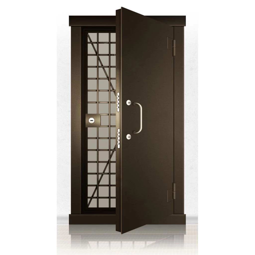 Металлические двери КХО и КХН представляют собой входные блоки, обладающие высоким уровнем взломостойкости и состоят из трех основных элементов: усиленного каркаса, сплошного металлического полотна и решетчатой двери. Дверной блок изготавливается из стального уголка 100*100 мм. Места крепления блока к стене цементируются и закрываются стальными наличниками шириной 40 мм. Крепеж заходит вглубь стены на 80 мм. В конструкции внешней створки монтируются ребра жесткости, для обшивки используется сталь толщиной не менее 3 мм. Внутренняя решетка изготавливается из прутка диаметром 16 мм. Размер ячеек решетки должен составлять не более 15 на 15 см. В точках пересечения прутья надежно приваривают друг к другу. В КХО и КХН необходимо поддерживать определенную температуру и влажность. Для этого внутреннее пространство глухой двери заполняется теплоизоляционным материалом, а по периметру двери приклеивается уплотнитель. Такие двери оборудуются замками с повышенным уровнем взломостойкости. Специализированные двери КХО и КХН в Нижнем Тагиле могут быть оснащены сигнализацией, в конструкции могут быть проушины для навесного замка и элементами для опечатывания. Если идет речь о двери в комнату хранения оружия, в створке оборудуется окно для выдачи оружия и спец. средств, которое накрывается стальной дверцей.