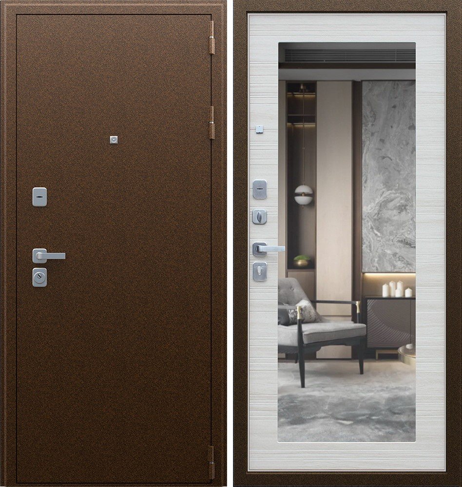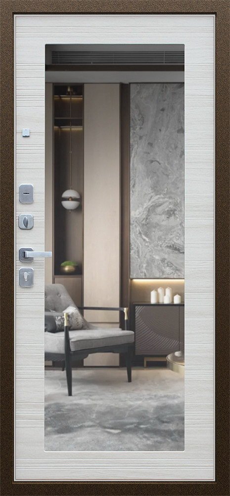 Надежная входная Дверь Спартак с зеркалом Акация Светлая Поперечная премиум класса по цене 36 631 руб. Большая толщина стали защитит от проникновения в ваш дом, квартиру или коттедж. Используется очень качественная фурнитура: замки, цилиндры, ручки, защелки. Покрытие и отделка двери изготовлено под внимательным контролем производителя. Дверь имеет долгий срок службы и гарантию.