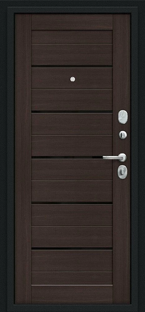 Надежная входная Браво Техно Kale Букле черное/Wenge Veralinga премиум класса по цене 34 381 руб. Большая толщина стали защитит от проникновения в ваш дом, квартиру или коттедж. Используется очень качественная фурнитура: замки, цилиндры, ручки, защелки. Покрытие и отделка двери изготовлено под внимательным контролем производителя. Дверь имеет долгий срок службы и гарантию.