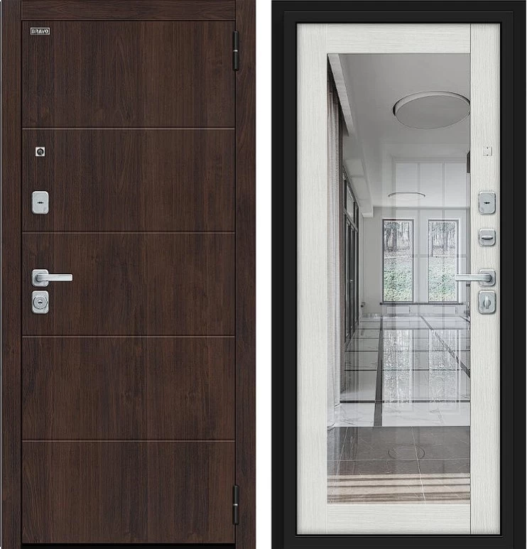 Надежная входная Дверь Браво Флэт/BChrome Almon/Bianco Melinga премиум класса по цене 42 531 руб. Большая толщина стали защитит от проникновения в ваш дом, квартиру или коттедж. Используется очень качественная фурнитура: замки, цилиндры, ручки, защелки. Покрытие и отделка двери изготовлено под внимательным контролем производителя. Дверь имеет долгий срок службы и гарантию.