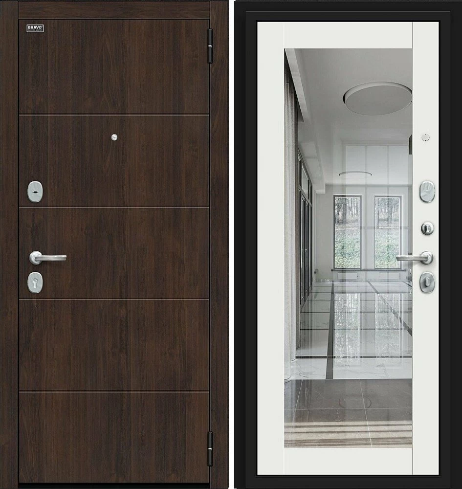 Надежная входная Дверь Браво Флэт Kale Almon/Off-white премиум класса по цене 41 931 руб. Большая толщина стали защитит от проникновения в ваш дом, квартиру или коттедж. Используется очень качественная фурнитура: замки, цилиндры, ручки, защелки. Покрытие и отделка двери изготовлено под внимательным контролем производителя. Дверь имеет долгий срок службы и гарантию.