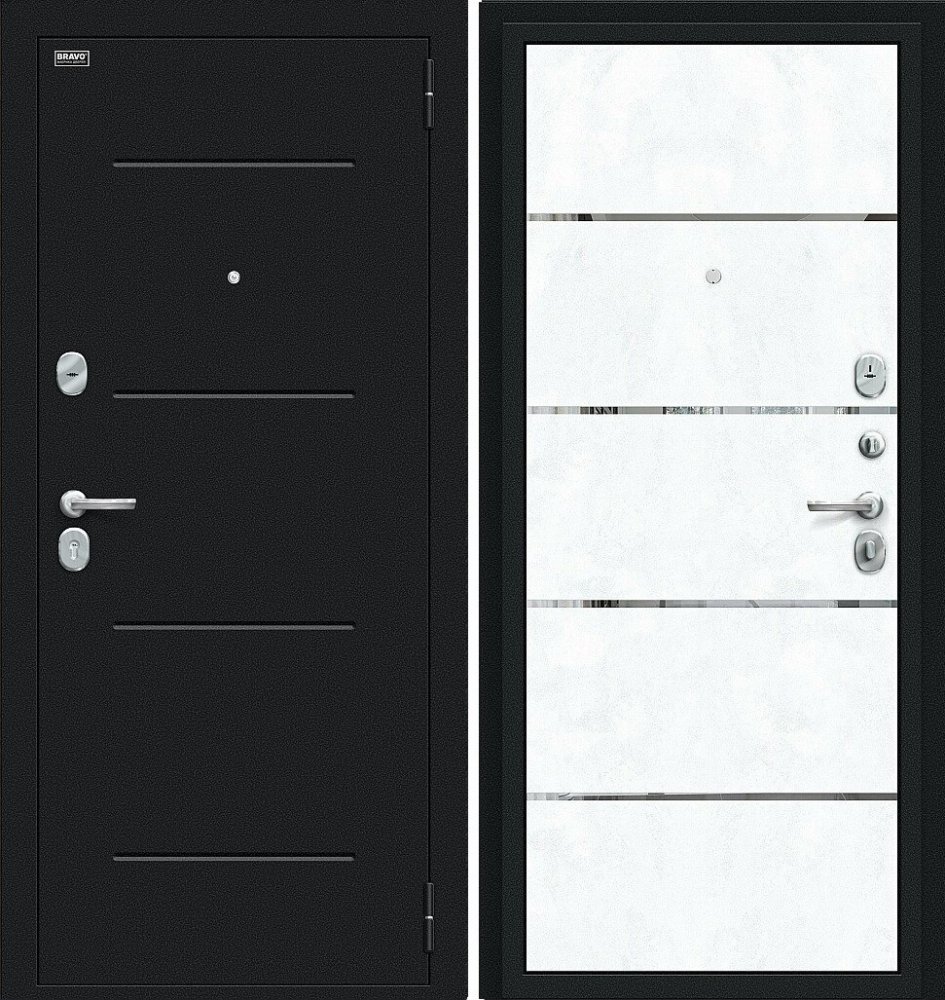 Надежная входная Дверь Браво Лайн Букле черное/Snow Art премиум класса по цене 30 201 руб. Большая толщина стали защитит от проникновения в ваш дом, квартиру или коттедж. Используется очень качественная фурнитура: замки, цилиндры, ручки, защелки. Покрытие и отделка двери изготовлено под внимательным контролем производителя. Дверь имеет долгий срок службы и гарантию.