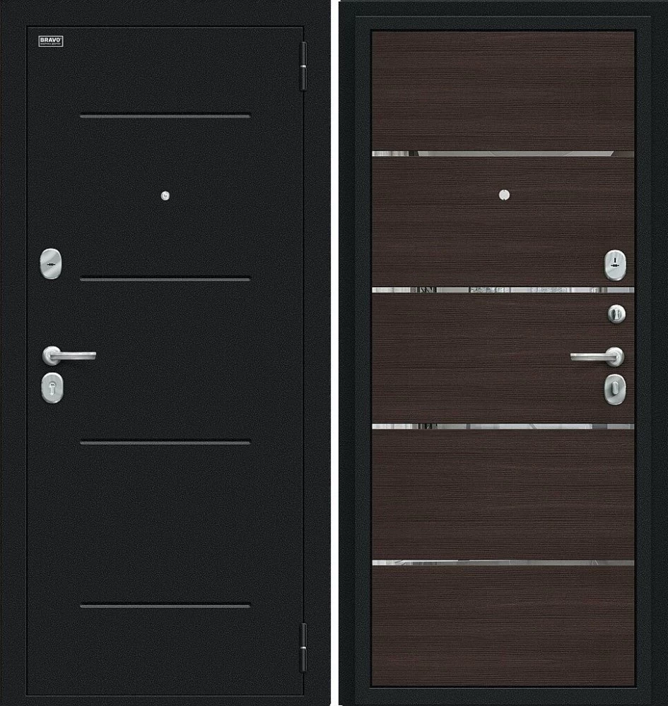 Надежная входная Дверь Браво Лайн Букле черное/Wenge Veralinga премиум класса по цене 30 201 руб. Большая толщина стали защитит от проникновения в ваш дом, квартиру или коттедж. Используется очень качественная фурнитура: замки, цилиндры, ручки, защелки. Покрытие и отделка двери изготовлено под внимательным контролем производителя. Дверь имеет долгий срок службы и гарантию.