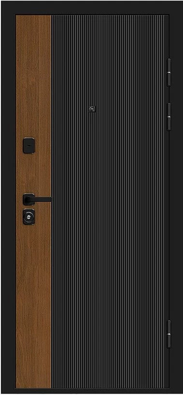 Надежная входная Дверь Браво Optim Z-2 Вертикаль Муар черный-Грецкий Орех/Белый премиум класса по цене 34 231 руб. Большая толщина стали защитит от проникновения в ваш дом, квартиру или коттедж. Используется очень качественная фурнитура: замки, цилиндры, ручки, защелки. Покрытие и отделка двери изготовлено под внимательным контролем производителя. Дверь имеет долгий срок службы и гарантию.