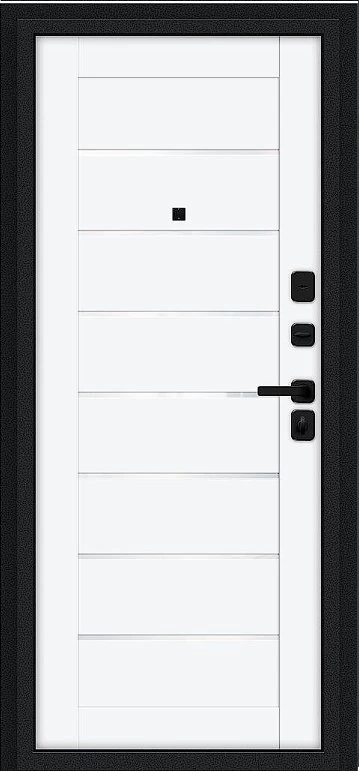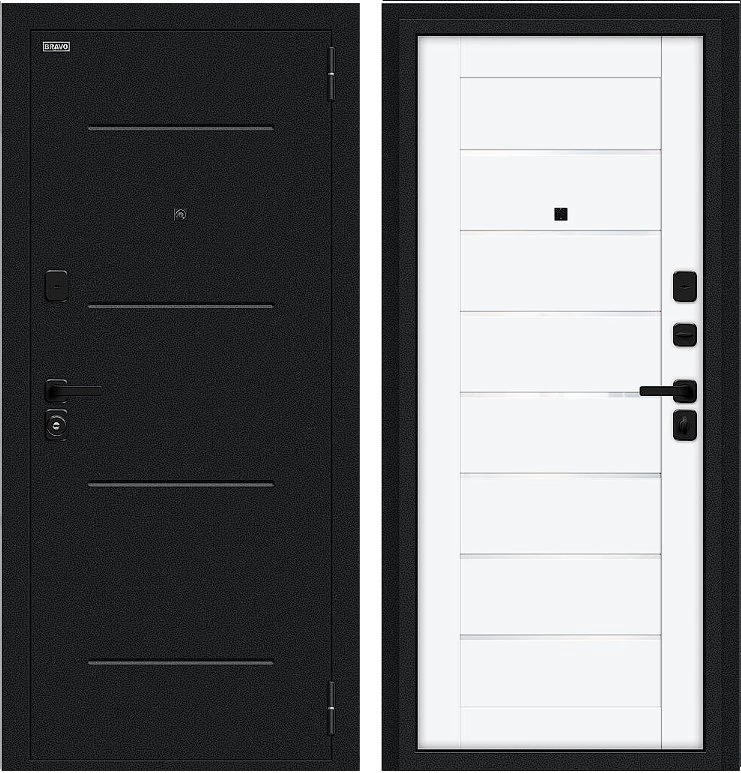 Надежная входная Дверь Браво Техно/SBlack Букле черное/White Silk премиум класса по цене 33 581 руб. Большая толщина стали защитит от проникновения в ваш дом, квартиру или коттедж. Используется очень качественная фурнитура: замки, цилиндры, ручки, защелки. Покрытие и отделка двери изготовлено под внимательным контролем производителя. Дверь имеет долгий срок службы и гарантию.