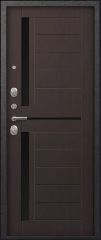 Надежная входная Дверь A-01 черный сатин - лиственница тёмная премиум класса по цене 31 281 руб. Большая толщина стали защитит от проникновения в ваш дом, квартиру или коттедж. Используется очень качественная фурнитура: замки, цилиндры, ручки, защелки. Покрытие и отделка двери изготовлено под внимательным контролем производителя. Дверь имеет долгий срок службы и гарантию.