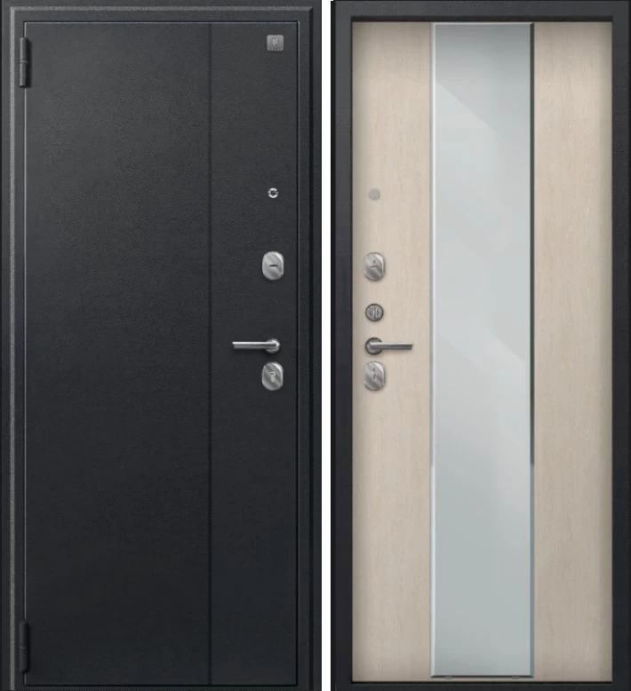 Надежная входная Дверь A-04 черный сатин - седой дуб зеркало премиум класса по цене 34 231 руб. Большая толщина стали защитит от проникновения в ваш дом, квартиру или коттедж. Используется очень качественная фурнитура: замки, цилиндры, ручки, защелки. Покрытие и отделка двери изготовлено под внимательным контролем производителя. Дверь имеет долгий срок службы и гарантию.