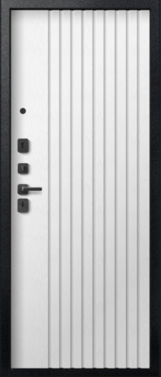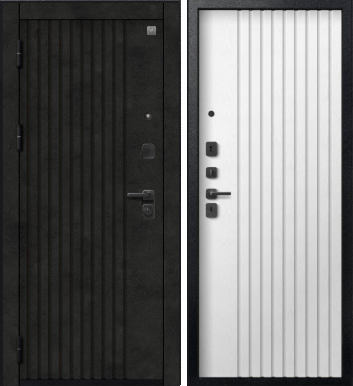 Надежная входная Дверь V-15 Черный муар + Бетон темный - Софт ясень белый премиум класса по цене 43 931 руб. Большая толщина стали защитит от проникновения в ваш дом, квартиру или коттедж. Используется очень качественная фурнитура: замки, цилиндры, ручки, защелки. Покрытие и отделка двери изготовлено под внимательным контролем производителя. Дверь имеет долгий срок службы и гарантию.